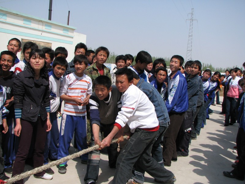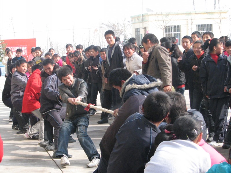 特别激动,特别兴奋。各班同学都扯着嗓子喊加油二字,基于参赛者鼓励和对参赛者的信心。经过艰苦的奋战,齐刷刷的二班都获得了第一,我们八三班的参赛者虽然人高马大,但是却瘦的如猴。第一次,我们在国旗台的左边,尽管地势很滑,同学们还是有信心拔过四班,看起来个个都集中精力听口哨的吹响,可是,哨子一响,四班就拔过了好大一截,我们啦啦队就拼命的喊加油。他们使出全身的力量艰难的往过拔。后面操纵绳子的何兴虎,由于穿的鞋子太滑,一会儿就滑倒了。拔过来拔过去,将近持续了两分钟,我方终于有了兴奋的欢呼声。接着双方交换场