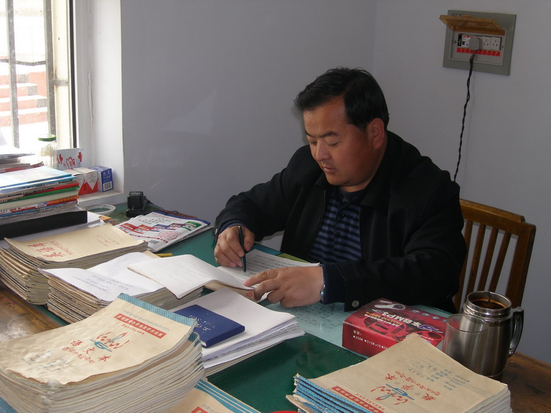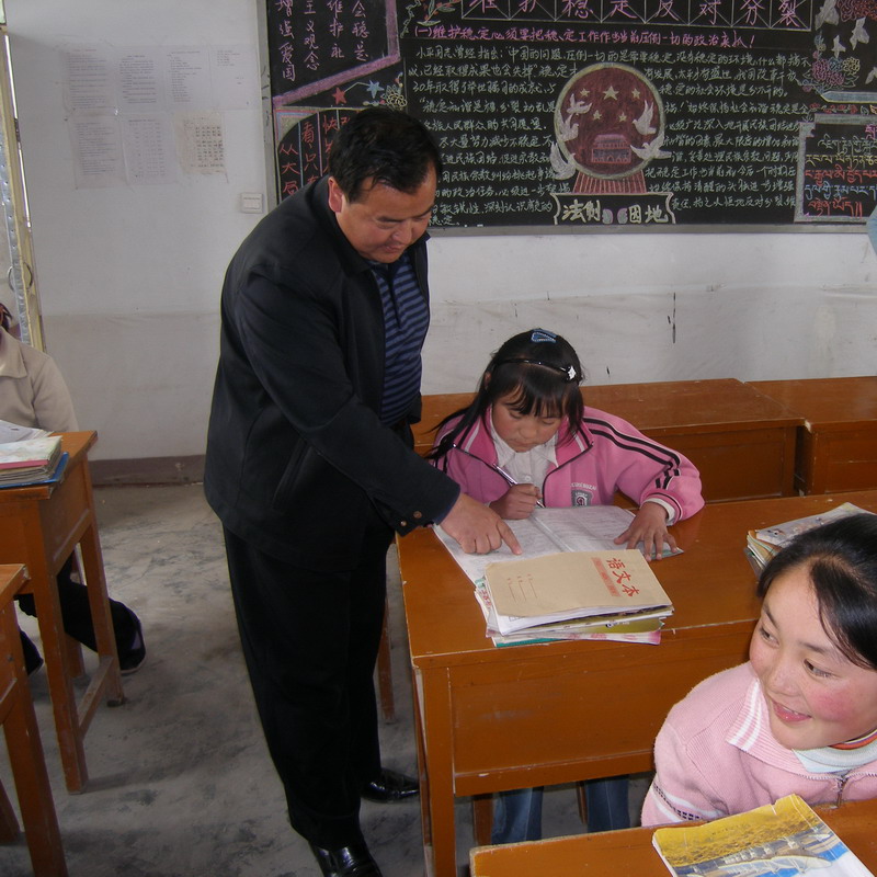 瞧:他又给那些在学习上感到吃力的学生们补课,不管同学们怎么问,他都会认真的讲。