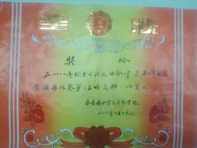 说起我的光荣榜,我有许多许多,其中有一个对于我来说是有非方的意义,那是一张奖状,它看似平凡“就是一张纸,上面写了几颗字”,但这张奖状是我在运动会上得的。