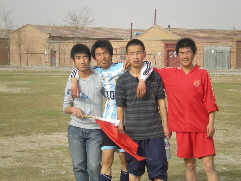 学校举行了足球比赛,这可乐坏了我们高二一班的同学们。他们跃跃欲试,纷纷报名参加。瞧这哥几个!多么神气啊!似乎为将要开始的比赛而做着心理准备。祝愿他们能踢好着一场球。