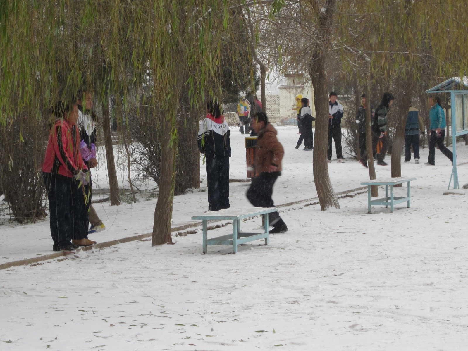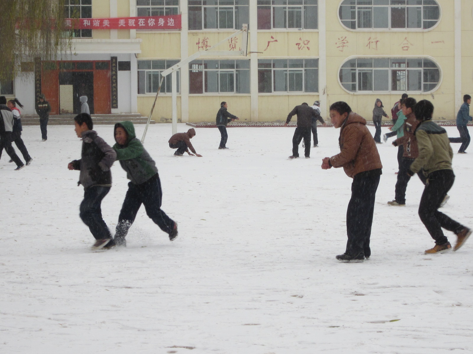 来到操场上,我们分成两队"驻扎"在操场的东西两侧,先攒好雪球,准备向前面的几个同学发起进攻,我们使劲向对方投掷雪球,男同学们用"车轮战"连续进攻,但他们也不甘示弱,拿着雪球向我们发起了反击。我们班的先锋队一直在不间断的进攻,眼看他们就要败下阵来,可不料想七年级的组织一队过来帮助他们,他们"万弹齐发"雪球打在了我们身上,背上,屁股上,我们不得不落荒而逃。
