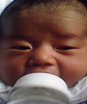 小侄女食量可大了,不到两个小时就要吃奶粉,吃饱了就睡,睡醒后接着吃,她真成了一个吃了睡,睡了吃的可爱"小猪猪"!
