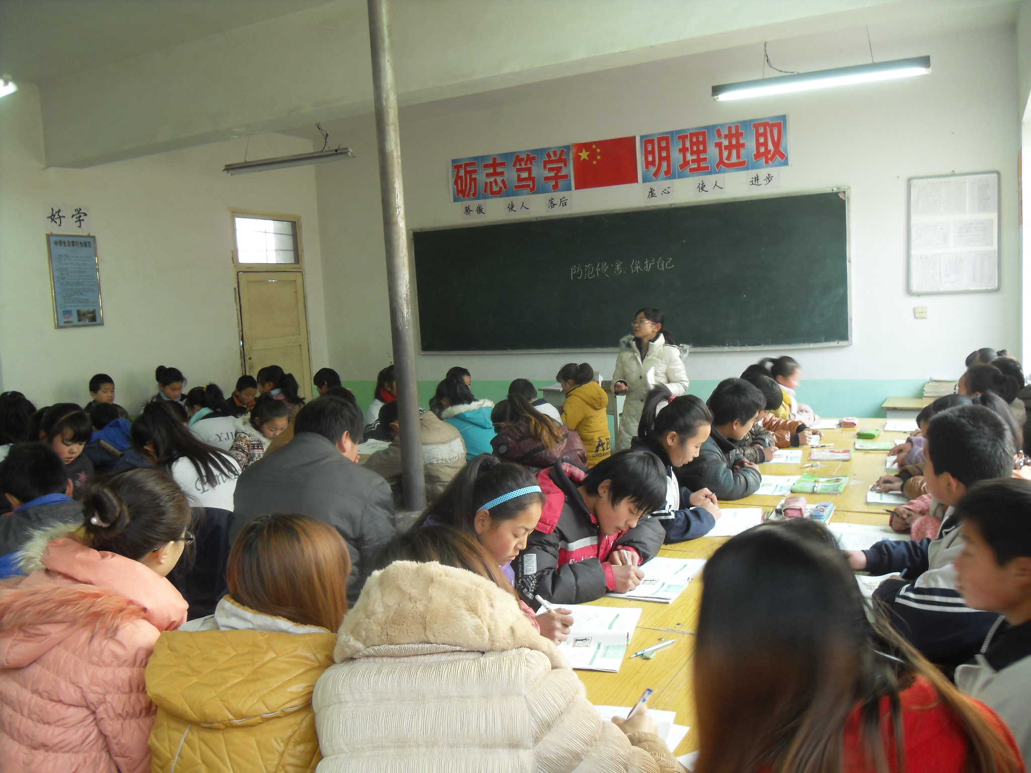 这就是我们的老大,三年的相处让我们对她产生了无限的敬意。初中生活还有不久就要结束了,对老大有很多的不舍,只希望我们都能好好努力不辜负老大的期望!