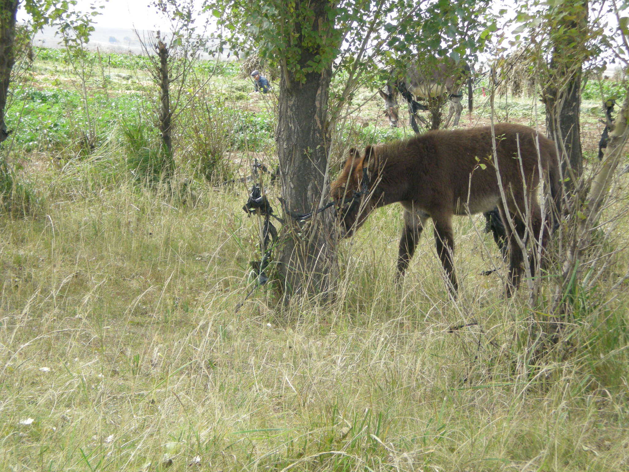 和我家山药地做邻居的是三大爷家的菜地,这几天大爷一直在这儿干活。大爷家的毛驴刚刚生下了小毛驴,到现在还没出满月呢。